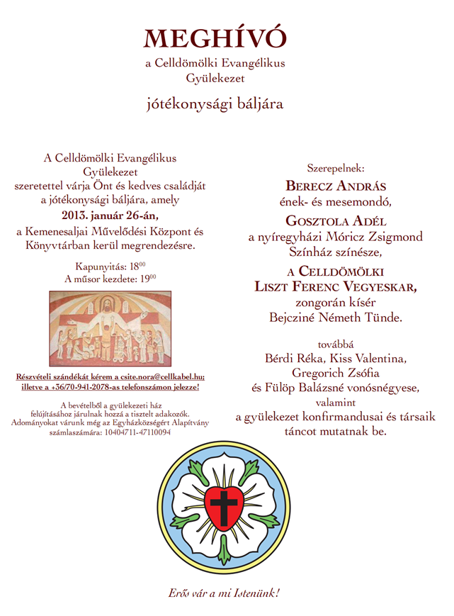 1. Evangélikus bál a gyülekezeti ház felújításáért meghívó